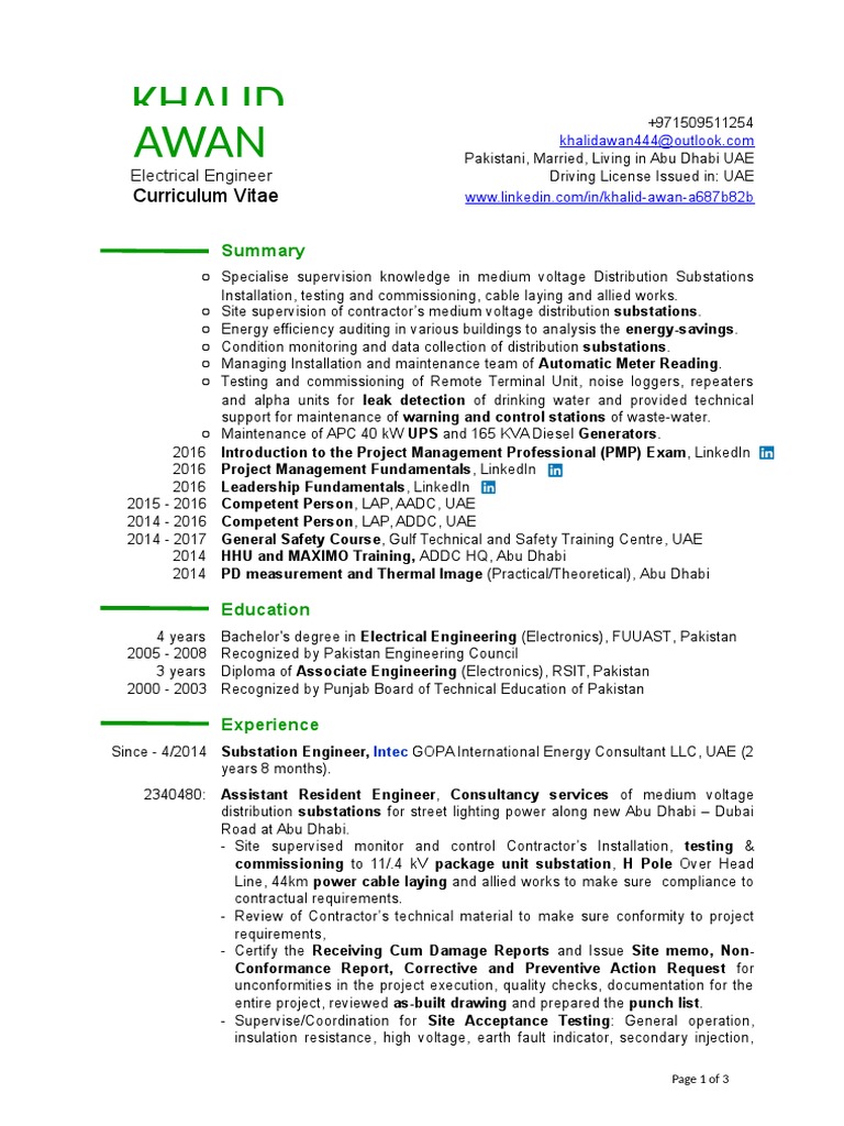 Cv For Installation And Test And Commissioning Of Substations Engineers : Traveled extensively throughout the world and earned recognition for testing and installing approximately 80 cyclotron units in 20.