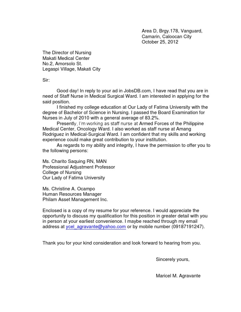 sampe nursing application letter from imgv2-2-f.scribdassets.com Oct 11, 2019 · a cover letter for an internal position is a written statement that accompanies your application for a new role within your current organization. Aug 23, 2019 · cover letter examples and templates. A resume paired with a cover letter makes up a complete job application. Similar to a standard cover letter, this type of message should discuss your professional accomplishments and your work experience to establish you as a strong candidate for the promotion. Jul 01, 2020 · a resume is a document providing a concise, neatly formatted overview of your professional qualifications. Jan 21, 2011 · my name is jason pullen, and i write to introduce my application in response to your ad for a qualified training consultant for your company. Using correct cover letter formatting sets the perfect foundation for writing a strong job application. Most people applying for job sent potential employers their resumes and very often it's enough to be hired.